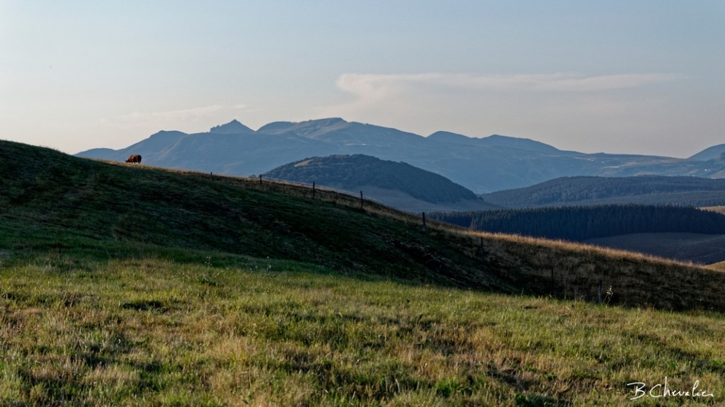 Les monts du Cézalier, immense plateau volcanique situé entre les monts Dore et les monts du Cantal sont une immense prairie à vaches (de races Salers, Aubrac, Limousine, Montbéliard principalement). Le paysage vallonné est trompeur car on est bien sur un ancien volcan, l’altitude moyenne tourne autour de 1200-1300 mètres.