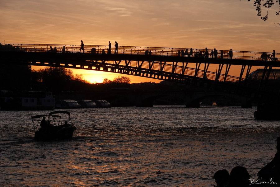 La première est plus récente, inaugurée en 1999, construite à l’emplacement d’un ancien pont, elle relie le quai Anatole France au jardin des tuileries, d’une seule arche.
